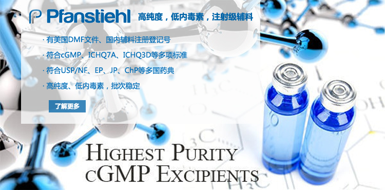 “熱烈祝賀Pfanstiehl的注射級甘氨酸Glycine(G-140)喜獲CDE登記號F20250000403, 這是Pfanstiehl產品獲得的第18個CDE登記號!”甘氨酸在醫藥輔料制劑中應用廣泛,, 可作為緩沖劑,增溶劑,穩定劑等,具有諸多優勢。Pfanstiehl秉承一貫高品質理念,為滿足全球生物制藥行業對于高品質甘氨酸的需求,隆重推出的注射級甘氨酸Glycine (G-140), 具有超高純度,超低內毒素,超低金屬殘留的特點,單獨檢測29種金屬離子,并且新增DNA,RNA,DNA酶,RNA酶和脂肪酶,亞硝酸鹽等多項質量指標的檢測,符合多國藥典規定(USP, EP, BP, JPE, ChP),可用于生物治療性藥物和疫苗的生產。產品信息:· 產品名稱:Glycine, High Purity, Low Endotoxin, Low Metals, USP, EP, BP, JPE, ChP (G-140)· 中文名稱:甘氨酸· 分子式:C2H5NO2· 分子量:75.07 g / mol· CAS號:56-40-6· 產品貨號:G-140產品特點: · 超高純度,超低內毒素,超低微生物含量,超低金屬雜質殘留· 質量指標新增DNA,RNA,DNA酶,RNA酶,脂肪酶和亞硝酸鹽檢測· 符合多國藥典:USP, EP, BP, JPE, ChP· 符合ICH Q3D標準· 符合GMP標準· 已獲DMF和CDE登記號 產品應用:· 緩沖劑· 穩定劑· 增溶劑如果您對Pfanstiehl注射級別Glycine G-140感興趣,歡迎聯系Pfanstiehl 中國區代理商北京西美杰科技有限公司獲得如下詳細的產品概況說明文件和測試樣品。Pfanstiehl Inc.最新產品系列如下,歡迎聯系北京西美杰科技有限公司獲取100g裝免費樣品。北京西美杰科技有限公司為Pfanstiehl中國代理,為客戶提供完善的技術支持與售后服務。歡迎撥打西美杰客服電話400-050-4006或者登陸網站www_xmjsci_com.zmmw.cn了解更多信息。 更多>